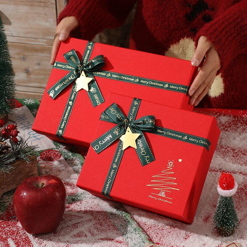Sturdy rigid cardboard material ensures premium feel & reliable protection for delicate gifts, with a smooth surface that showcases vibrant Christmas printing (snowflakes, Santa motifs, etc.).